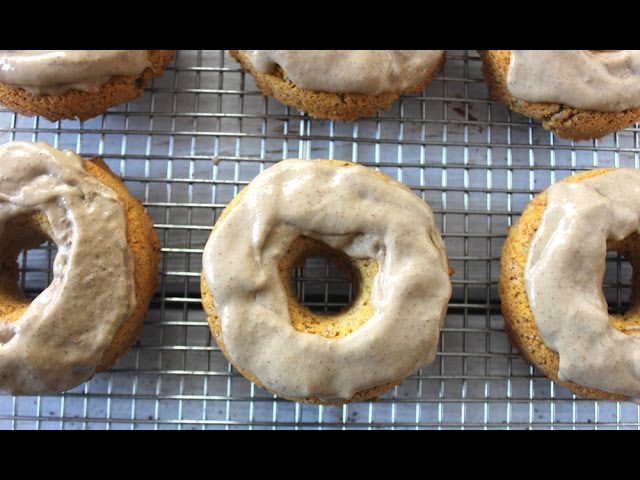 Pumpkin Spice Latte Donuts recipe topped with a sugar-free coffee glaze. Fall breakfast inspiration. An easy, baked donut recipe that’s gluten-free and dairy-free. And can be made grain-free. Move over pumpkin spice latte and say hello to the best donuts! http://bit.ly/pumpkinlattedonutrecipe